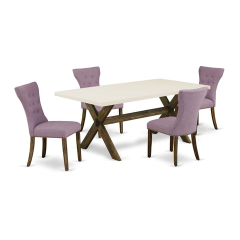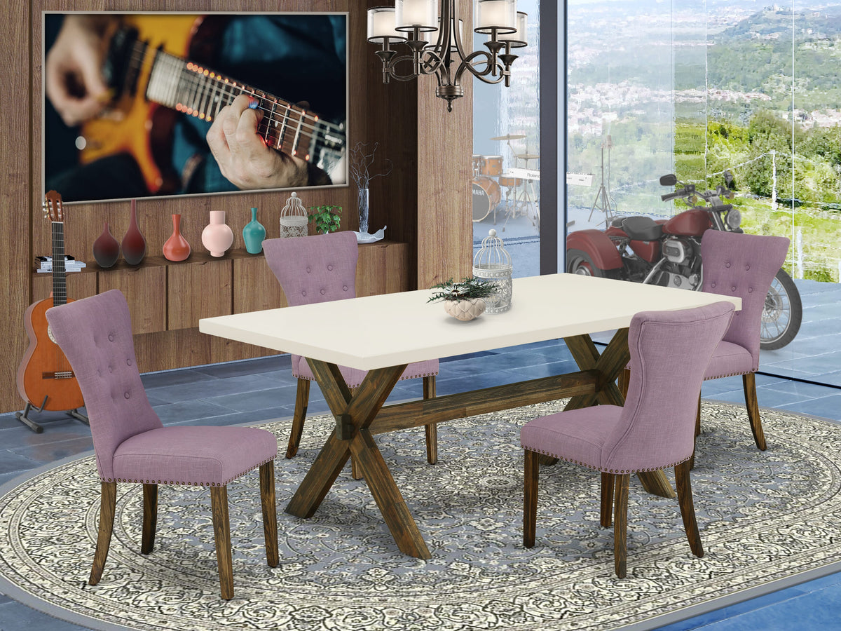 X727GDS2X-0 5-Piece Dining Ensemble with X-Legged Table and 4 Dahlia Parson Chairs in Various Hues - 40x72