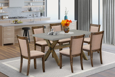 This 7-piece dining room set comes with 1 modern dining table and 6 matching kitchen table chairs. The table set is made of fine RubberWood for high quality and endurance. A rectangular-shaped wooden table is manufactured in a unique style with distinct features and linen fabric upholstered kitchen chairs will inspire everyone who comes to the dining room. The wooden dining table contains X-style legs to offer the best steadiness during dinner. The innovative and elegant design of the modern dining table set easily blends in any home. The Padded seat of the dining table chairs is made of linen fabric that enhances the wooden table design. Our fashionable dining set is very simple to clean with a damp towel and always offers a sophisticated appeal. The installation process of our luxurious dining set is not difficult and simple to use. Each mid century dining set comes conveniently with easy-to-follow guidelines and all necessary equipment included. You simply need to follow the procedures in the handbook to complete the assembly in a minimal time.