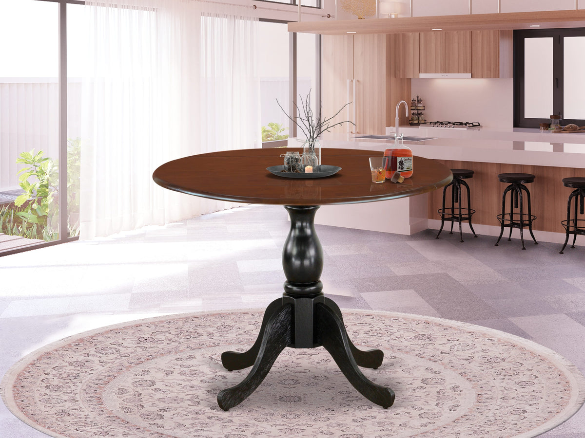 This wood dining table adds some rustic charm to your home, it is a good addition to the kitchen or dining areas. A spacious modern kitchen table will give you good comfort when will sit on it for eating food & snacks. The kitchen table is produced of durable Asian solid wood for long lasting use. The modern dining table is made from excellent quality solid wood and offers stability, while the included Two 9-Inch Drop Leaves provide maximum convenience. This dinner table provides an attractive design with a touch of class to add a stylish appeal to any kitchen area. The round table has a great finish that enhances the beautiful design of your dining & kitchen areas. Our modern kitchen table features a Mahogany Round Table top and Black Wooden Pedestal Leg. The dinner table goes well with all styles of decoration, and you can use it in your dining area with confidence. Our modern table comes in easy parts that are simple to assemble. Easy-to-follow instruction is included in the package, and no additional tools are needed for assembly. Keep enjoying East West Furniture!