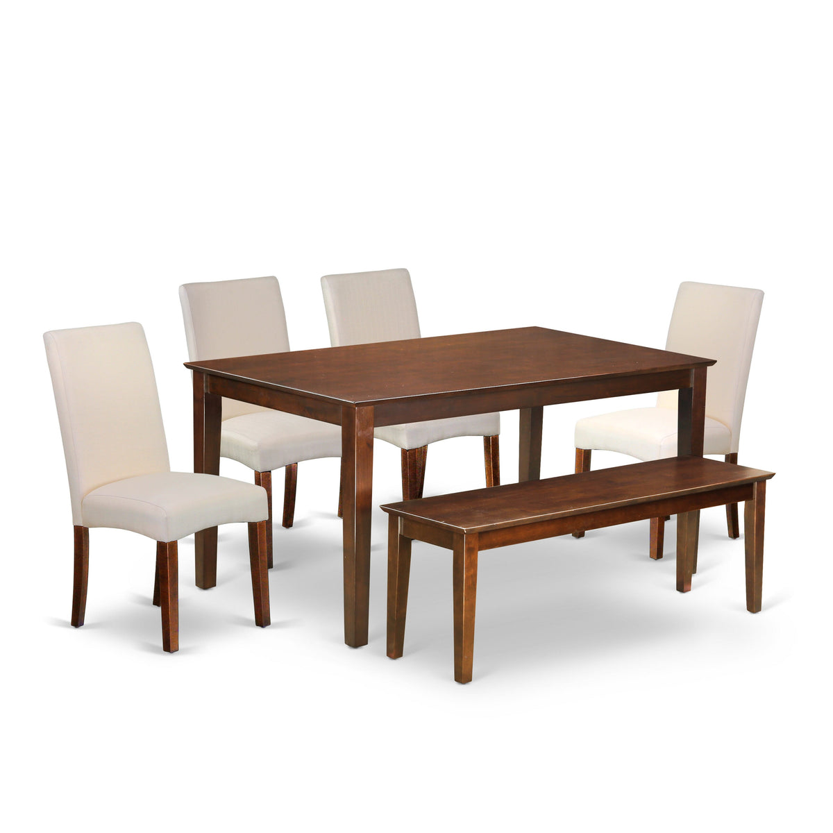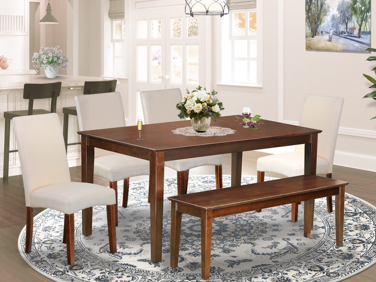 CADR6-JNU-E8 6-Piece Dining Set with Rectangular Table, 4 Cream Linen Chairs & Bench in Mahogany - 36x60 in