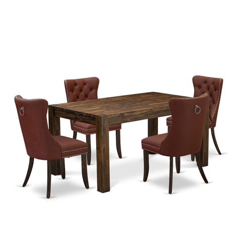 CNDA5-T9-9ZK 5-Piece Set with 36x60 Rustic Table & 4 Distressed Jacobean Fabric Chairs