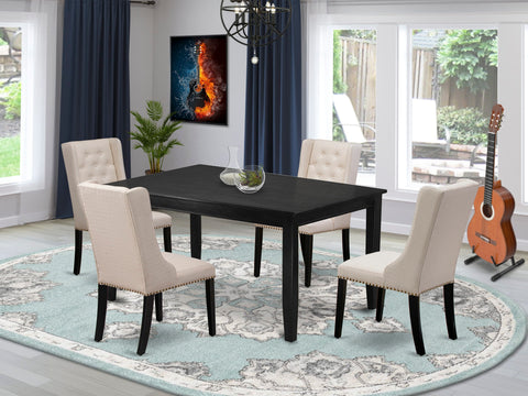 DUFO5-6RO-9O Four Person Dining Set with Rectangle Table & Cream Chairs - 36x60 Inch Elegance
