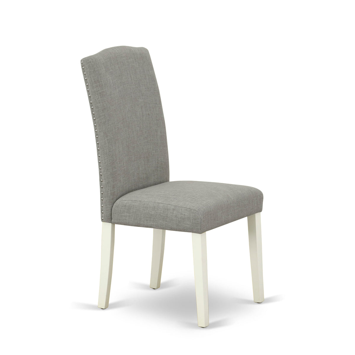 The luxurious dining set provides a distinctive Linen White finish well-fitted to any sort of home decoration style. The fresh and clean lines dominate the cutting-edge design of the square small dining table of this valuable kitchen Set. To complement the dining room table's square beveled tabletop, The Linen White finish gives you the Glimmer and shadows on the small kitchen table's legs with various contours and ridges for an antique dining room table set. 100% solid wood from table top to table legs. No heat treated pressured wood like MDF, particle board or veneer top was fabricated. This simple but charming parson chair will add ambiance and style to your dining room. A contemporary twist on a classic design, this eye-catching design will liven up any look. The traditional parson gives this chair a touch of familiar charm, while the linen fabric-dark Shiitake color and clean-lined design elevate this chair with a modern flair. By replacing the old dining set with this one, you can effortlessly refresh your dining space. Straight legs give this design a hint of well-worn style, while its arched silhouette and nail head trim round out the look with classic character. This budget friendly, Durable and comfortable dining set can be a good choice if you are looking for a great dining time experience with family and friends.