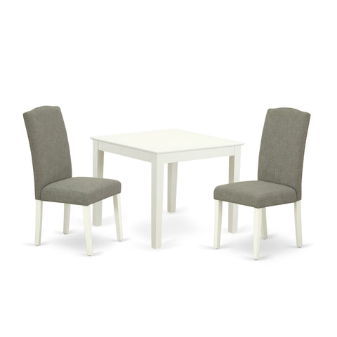OXEN3-45A-RU Cozy 3-Piece Set Compact Square Table with Two Dark Shitake Linen Chairs in Crisp White, Ideal for Tight Dining Areas