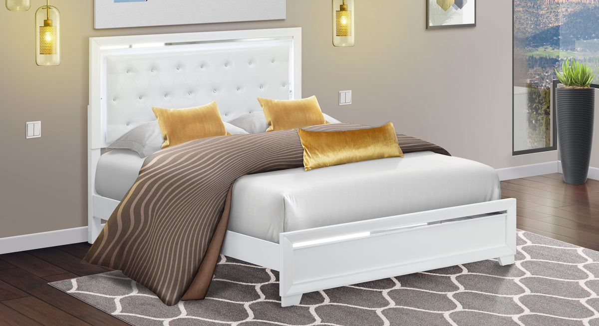 This elegant white contemporary queen bedroom makes a stunning addition to any bedroom in your home. Our 1 Queen Bed with a White finish brings sophistication and elegance to any living space. This queen bed's slats are great to provide you comfort. You will surely feel comfortable because of the Wood slats. Wood gives good stability for daily use. This wooden bed will attract everybody that will come to your bedroom because of its design. This queen bedroom is suitable for any bedroom and makes a traditional design for any bedroom area. The Queen bed with LED light showcases a futuristic design, the modern wooden bed exudes expediency and usability. LED lights, gives your bedroom or even the whole bedroom area a huge boost of aesthetic visual appearance in no time. Our Queen Size bed is simple to match any room decor and takes low maintenance and with simple assembly, All Hardware and tools will be provided in the package. Our wooden bed is quite easy to clean and always gives a great appeal.