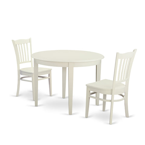 BOGR3-RD8-S 3-Piece Set with 42 Round Table & 2 Chairs, Perfect for Compact Kitchens, Linen White