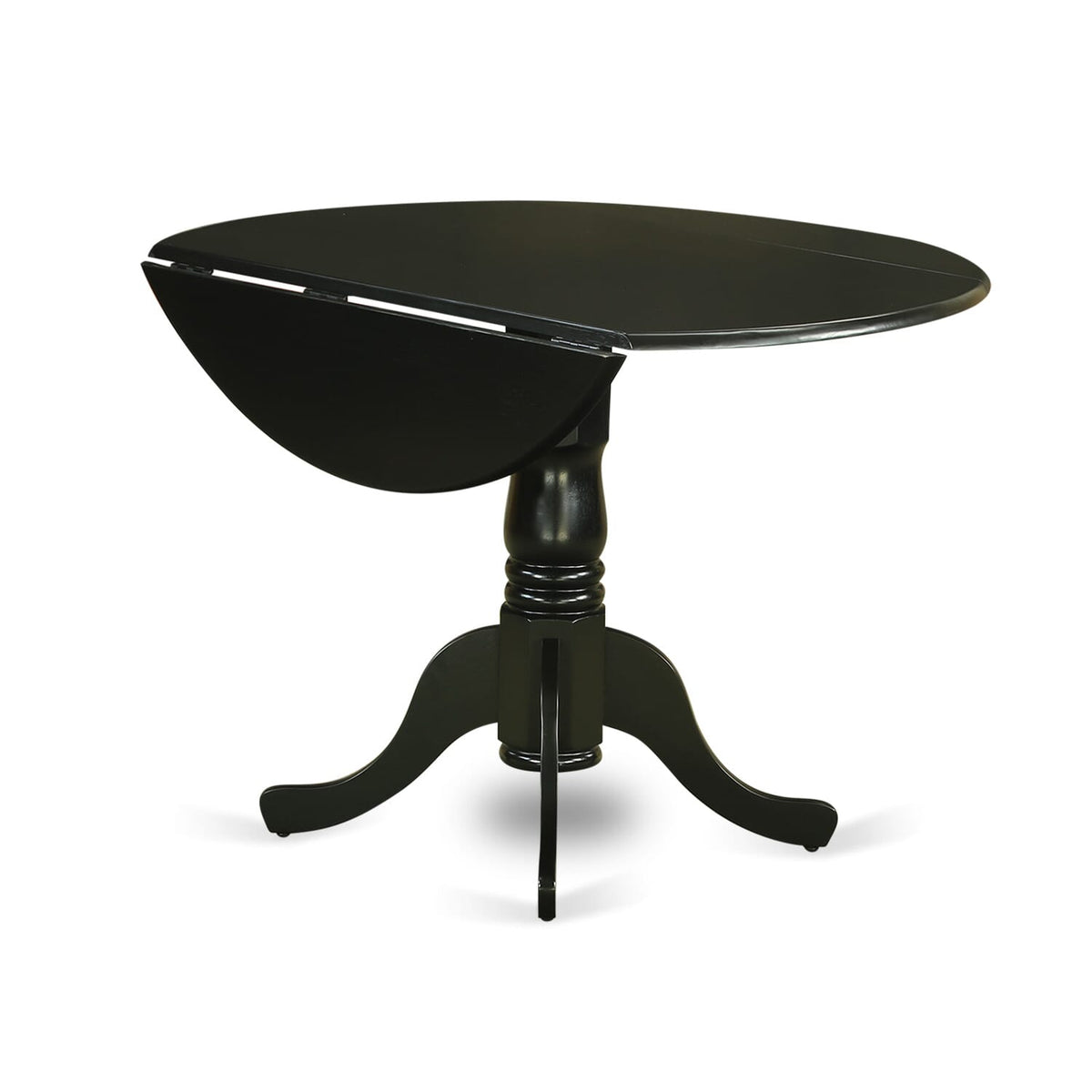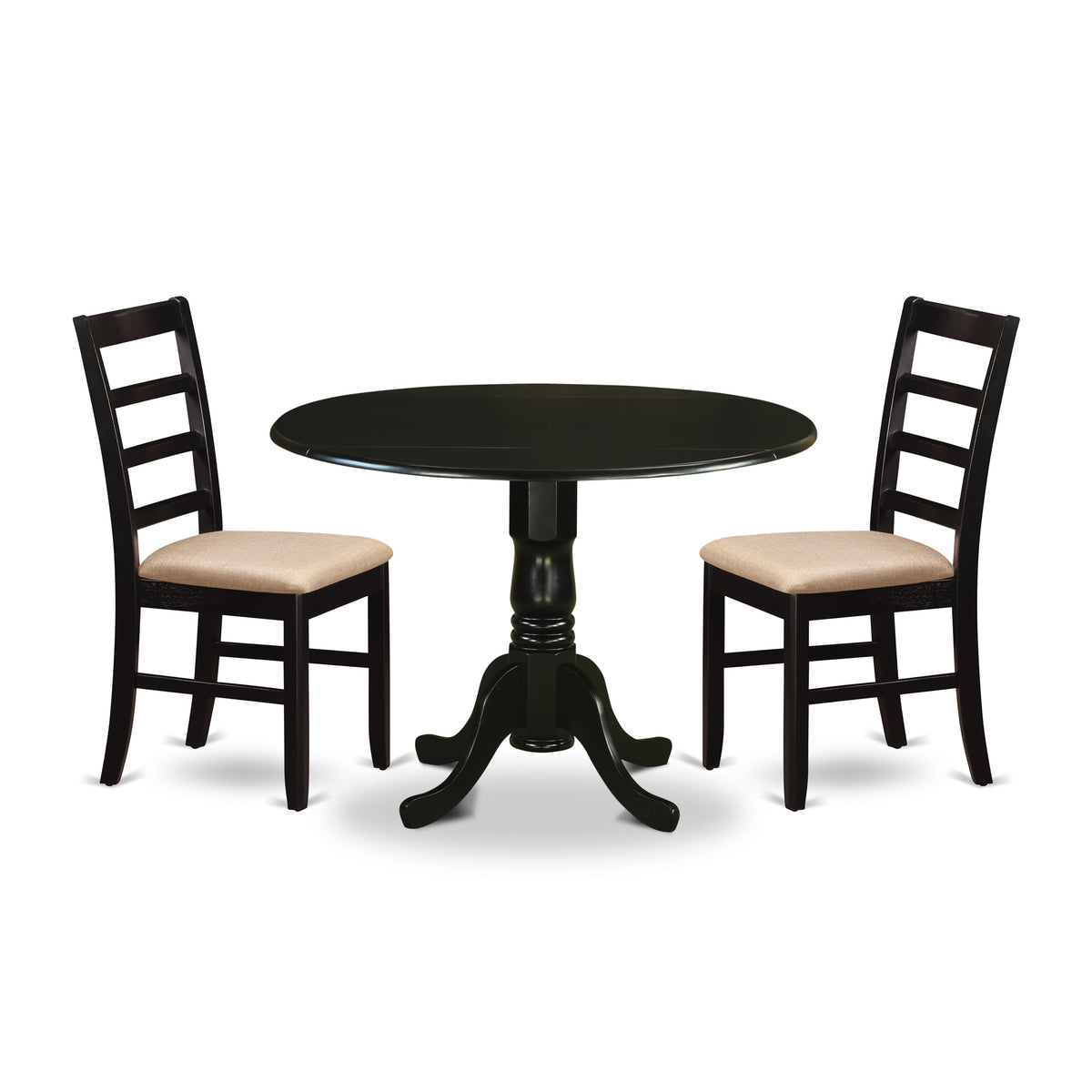 DLPF3-A2G-D 3-Piece Set Round Dining Table w/Dropleaf & 2 Upholstered Chairs, 42x42in, Elegant Black