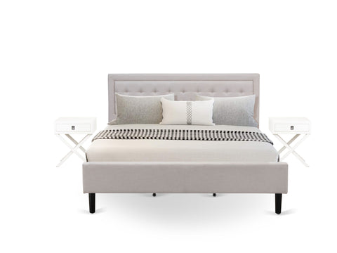FN08K-2NLIC 3-Piece King Bedroom Ensemble Includes Mid-Century Bed & Nightstands in Mist Beige Linen On Sale