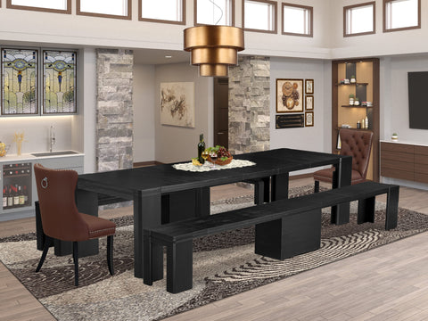 Explore the Luxe collection by East West Furniture, where you'll find top-tier furnishings exuding grace and sophistication, adorned with a refined touch. Our 5-piece Extendable Dining Table Set includes a meticulously crafted table, 2 wooden benches, and 2 inviting kitchen chairs. These chairs blend comfort and style with a Wire Brushed Black tabletop and plush Burgundy Faux Leather upholstery. Crafted from high-quality Acacia wood, our furniture ensures durability and stability. The extendable dining table guarantees longevity, and modern kitchen chairs enhance comfort with Faux Leather seats and stylish slatted backs. The butterfly leaf table adds practicality, and assembly accessories are provided. Cleaning is effortless with a simple wipe-down. Elevate your dining space with unmatched elegance, creating a stylish, cozy gathering place for friends and family with Luxe by East West Furniture.
