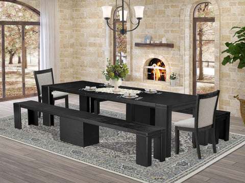 Experience the unmatched elegance of Luxe by East West Furniture, our exclusive premium furniture brand. Explore Luxe by East West Furniture and discover the 5-piece Extendable Dining table set, which includes a dining table, 2 wooden benches, and 2 upholstered dining chairs. The upholstered dining chairs provide added comfort to any dining room, featuring Wire Brushed Black tabletop and chic shitake Linen Fabric upholstery. These dining chairs boast a stylish wire-brushed black finish, crafted from high-quality Acacia wood. The sturdy dining table set offers excellent load-bearing capacity and stability. Its durability assures reliability in everyday use. The modern kitchen chairs prioritize comfort with Linen Fabric seats and slatted backs. Additionally, a butterfly leaf table allows effortless size adjustments to meet varying needs. All accessories come conveniently packaged in a carton with easy-to-follow instructions for swift chair installation. Maintain their pristine condition by wiping the chairs clean before use. Experience Luxe by East West Furniture's sophistication today.