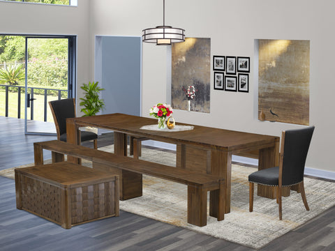 X02VE-NMX-NZ Elegant Dining Experience 6-Piece Set with Rectangle Table, Coffee Table, Chairs & Benches - Antique Walnut