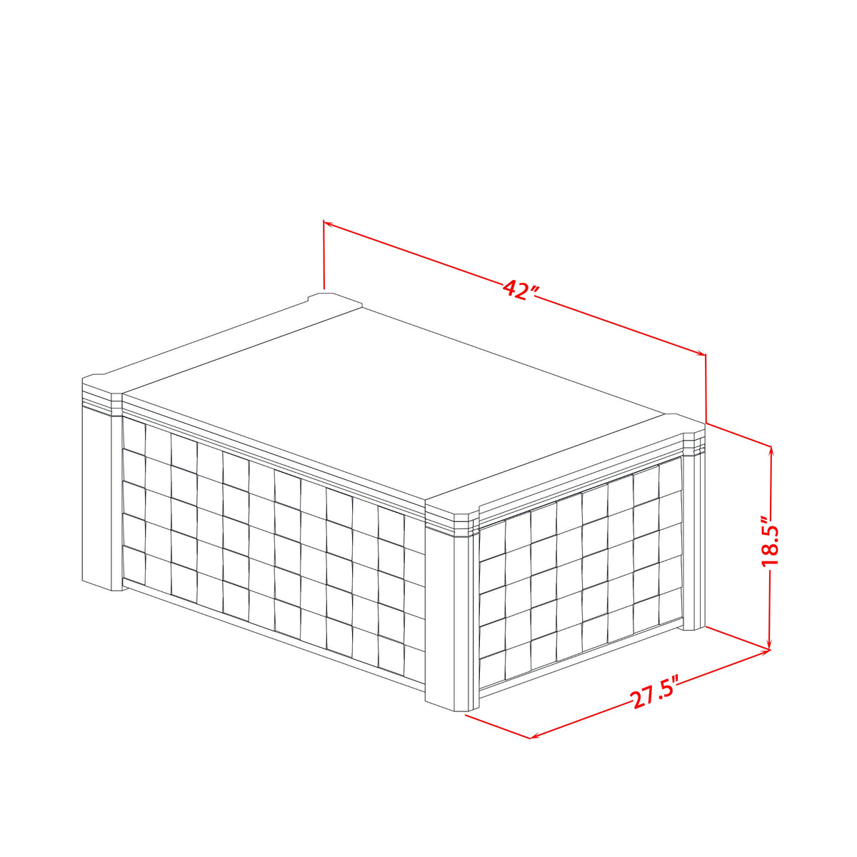 • Coffee Table Dimension: Length: 42; Width: 28; Height: 19.