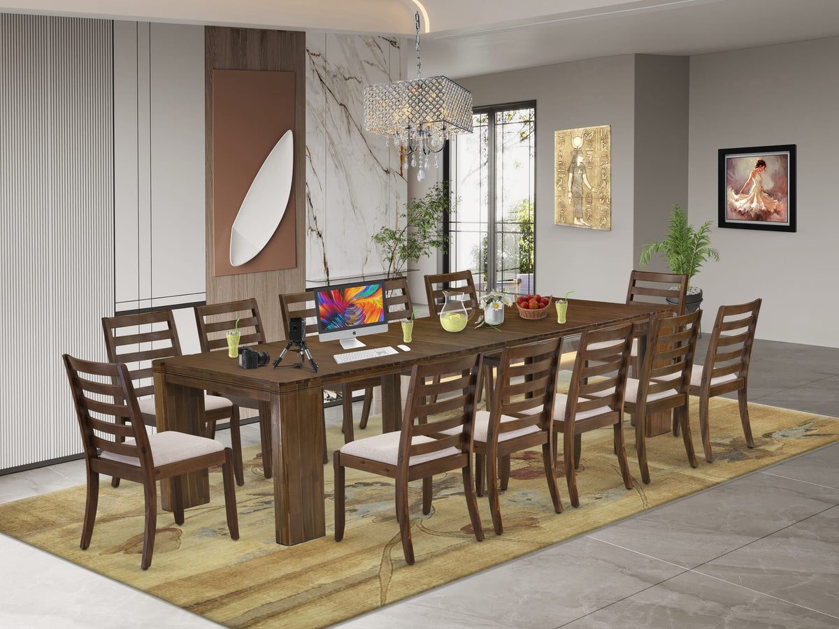 Dining Set X12X1-8XI-JB 13-Piece Rectangular Table and Stackable Chairs in Rich Walnut Finish