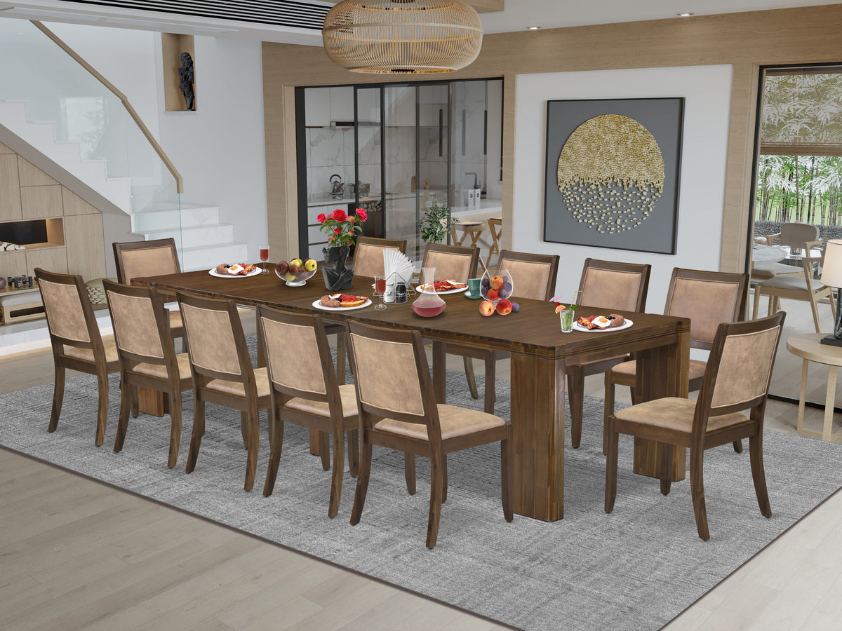 X12X2-0IW-QR Dining Set 13 Piece Extendable Table with Stackable Chairs in Antique Walnut Finish