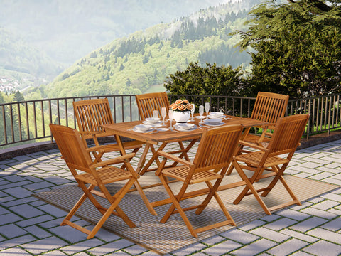 AECM7Z502 Versatile 7 Pc Patio Dining Set with Rectangular Acacia Wood Table & 6 Foldable Chairs On Sale