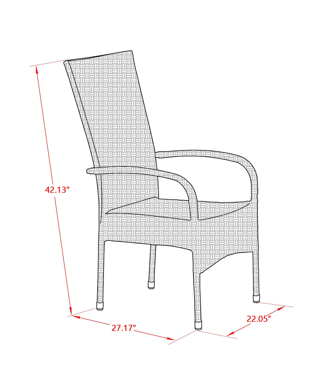 Furnish your patio dining area with this wicker patio set with a Natural finish. This 7 PC outdoor set includes a Glass top outdoor table and 6 single arm chairs. Constructed from a lightweight steel frame and wrapped with woven resin wicker fiber, this solid foundation weather-resistant outdoor set functional uses, and maximum comfortability. The all-weather table with a glass tabletop brings a sophisticated look and allows you to place snacks, drinks or decorative items. The matching armchairs with cushions are designed to provide a comfortable and relaxing lounging experience in the outdoor area for hours at a time. The comfortable cushions are water-resistant, dustproof, easy to clean and built to last. Either it’s an intimate gathering or a charming family dinner; this contemporary dining set delivers a great dining time experience in the fresh air with your family or friends.