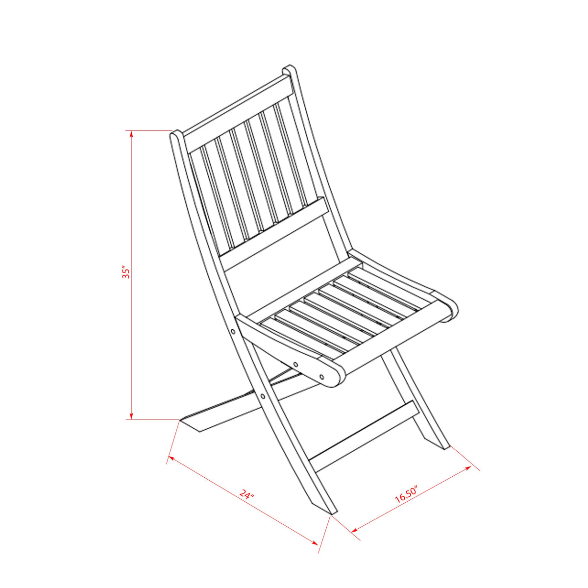 Our 5-piece bistro patio set includes 1 outdoor dining table and 4 lawn chairs that could sit up to 4 people easily. Enjoy your family time with this lovely 5-piece bistro set. This outdoor bistro table set is made with fine Acacia Wood for sturdiness and endurance. This rectangular-shaped outdoor wood table is developed in a unique style with unique features, and lawn chairs will attract everyone who comes to the backyard area. This outdoor table set also features a convenient folding function that provides easy storage when it's not in use. The sturdy wood frame maintains its looks and docility throughout the seasons. The outdoor patio table and lawn folding chairs contain X-style legs to offer the greatest reliability. This patio set appears like a decorative addition for your backyard, balcony, or patio. Our patio dining table set is easy to clean using a wet towel. Each patio table set comes conveniently with easy-to-follow guidelines and all required tools included. You have to follow the procedures in the guidebook to complete the installation in a short time.