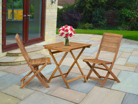Outdoor Bistro Set SEFM35IB1 3-Piece Set with Acacia Wood Table and Foldable Chairs