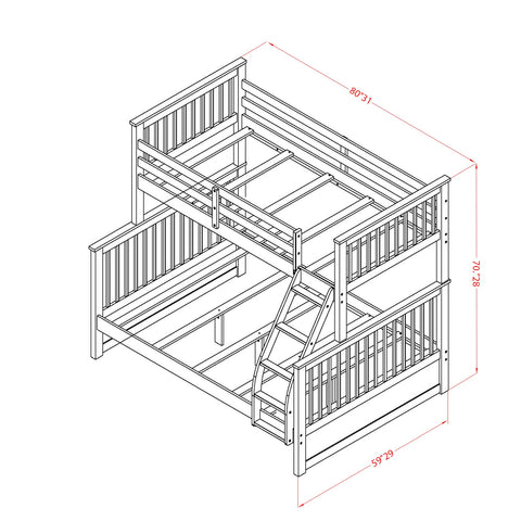 - Measurement of kid’s bunk beds: Length: 80; Width: 59; Height: 70