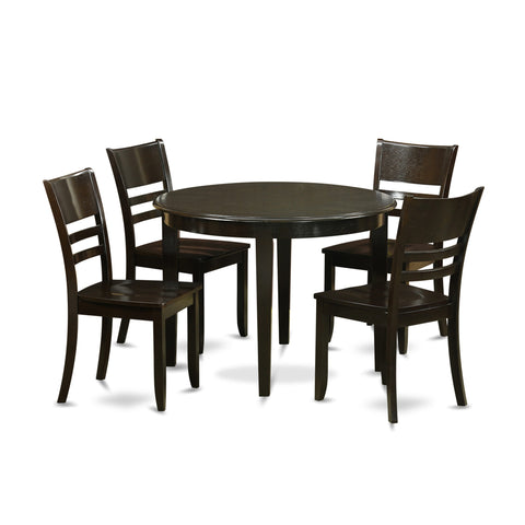 BOLY5-YXO-J 5-Piece Dining Ensemble with Round Table & 4 Chairs, 42-Inch, Rich Cappuccino
