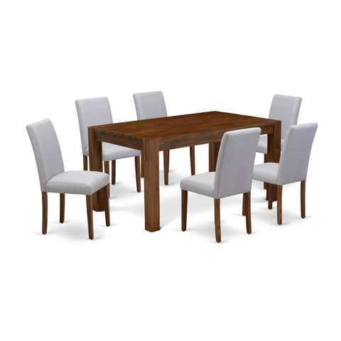 This 7-Pc dining room table set consists of 6 parson dining chairs and 1 Dining Table. These kitchen chairs have a Linen Fabric seat, High Chair Back and the wood dining table consists of a rectangular table top and Wooden Legs. We have produced these dining chairs and kitchen dining table with the help of highly experienced carpenters, who generate a smooth and high-end finish to this kitchen dining room set. We try to provide innovation as well as ease of assemble. Our top quality modern dining set is suitable for you and any dining area. This modern dining set can be used for casual home parties or intimate gatherings.