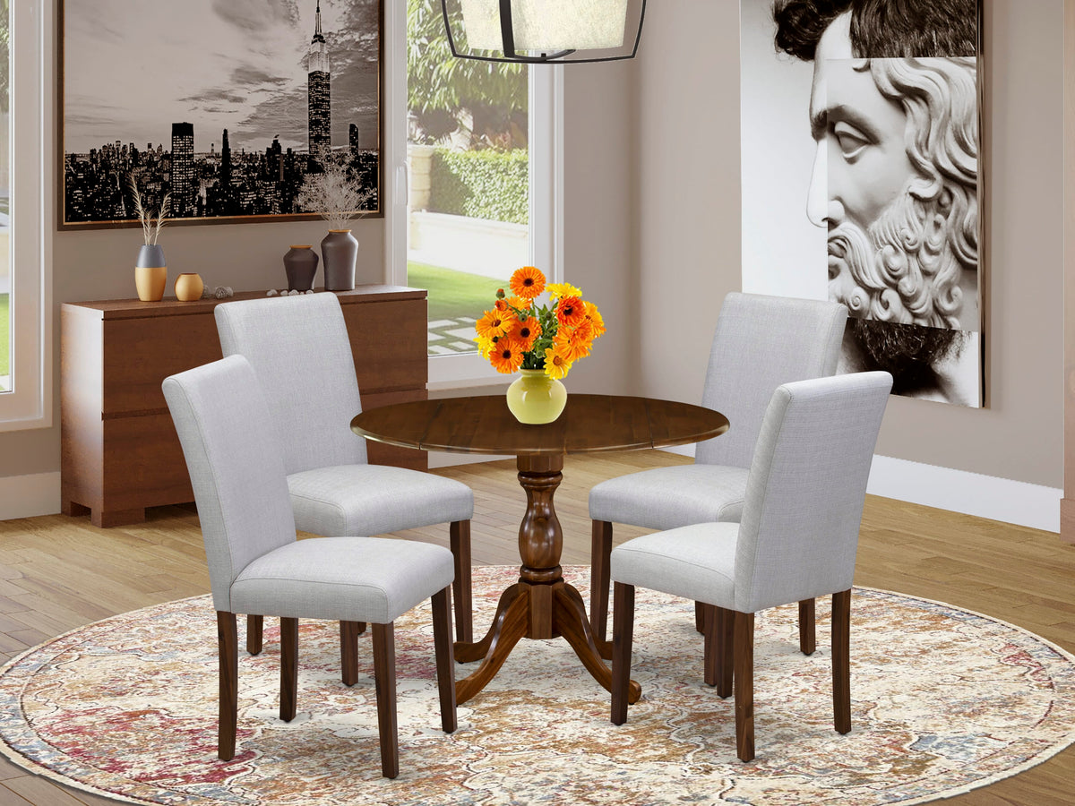 Redesigned DMAB5-ISY-BE 5Pc Dining Ensemble with 42 Circular Dining Table & Four Cushioned Chairs - Elegant Walnut Tone