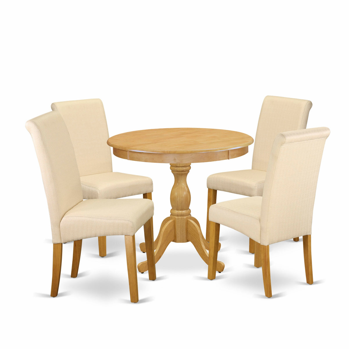 5-Piece Dropleaf Dining Set with Parson Chairs in Light Beige, DMBA5-J8W-KM, Oak Finish 42