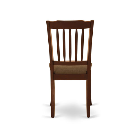 Furnish your dining area with this excellent classy DUDA6-4A8-7 dinette set includes a rectangular dining table, four dining chairs and a bench. The traditional style and design of this dining set corresponds all sorts of dining decor concepts and assures that meals are always filled with joy. The center rectangular table is best for 4-6 people to sit and enjoy their meal. The kitchen table along with straight legs is created from high quality rubber wood known as Asian Hardwood. No heat treated pressured wood like MDF, particle board or veneer top fabricated. This eye-catching Danbury dining room chair offers a modern and sophisticated look. The Kitchen dining chairs come with a Linen Fabic seat to fit personal preference and perfect design. This Stylish dining chair features curved front legs. Elegant kitchen chairs feature 7 vertical slats to give any dining area a touch of class and sophistication. Finished in smooth Mahogany Color. The Mahogany finish bench matches well with the table and chairs. This budget friendly, durable and comfortable dining set can be good choice if you are looking for a great dining time experience with your family or friends.