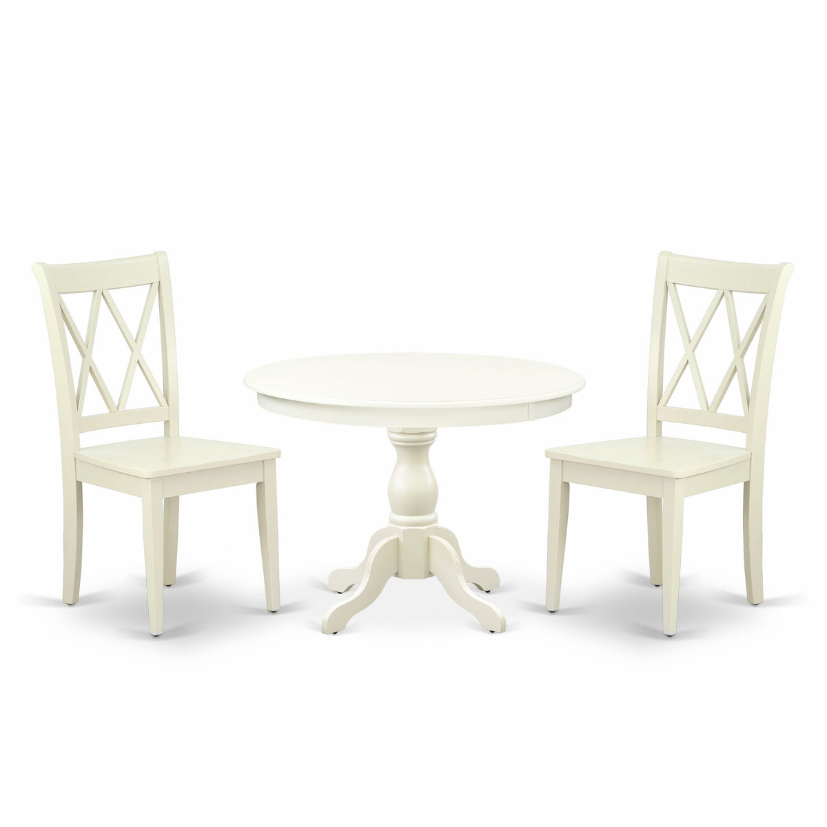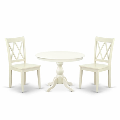 Our 3-Piece dinette set provides a round Dining Table and 2 wooden dining chairs which can fully accommodate your family. This dinette set features a sophisticated and eye catching appearance. The sophisticated design and Rustic, Linen white kitchen chair are perfect to match any dining room. Change your home decor with our rustic design dining room set. Linen White textured finish adds a unique allure to any dining area while the wooden legs of both the kitchen chair and the wood table will certainly help you to improve the solidness and traditional feel. The contemporary style dining room table set adds a touch of elegance to the home that you and your family will absolutely enjoy. These kitchen chairs provide you with an incredibly relaxing experience because it has double X-back and cone-shaped legs. Featuring a smooth surface, this dining table set is easy to be kept clean with a wipe down to get hassle-free maintenance. Assembly of our modern dining table set needs little time and it will be easy to assemble if you will follow the step-by-step instructions.