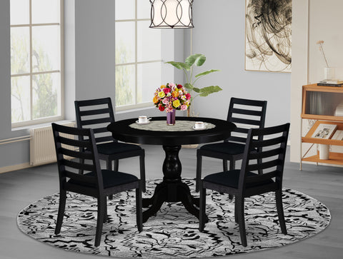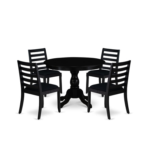 HBX15-5RN-GN Modern 5-Piece Dining Ensemble with Round Table & Stackable Linen Chairs, Wire Brushed Black Finish