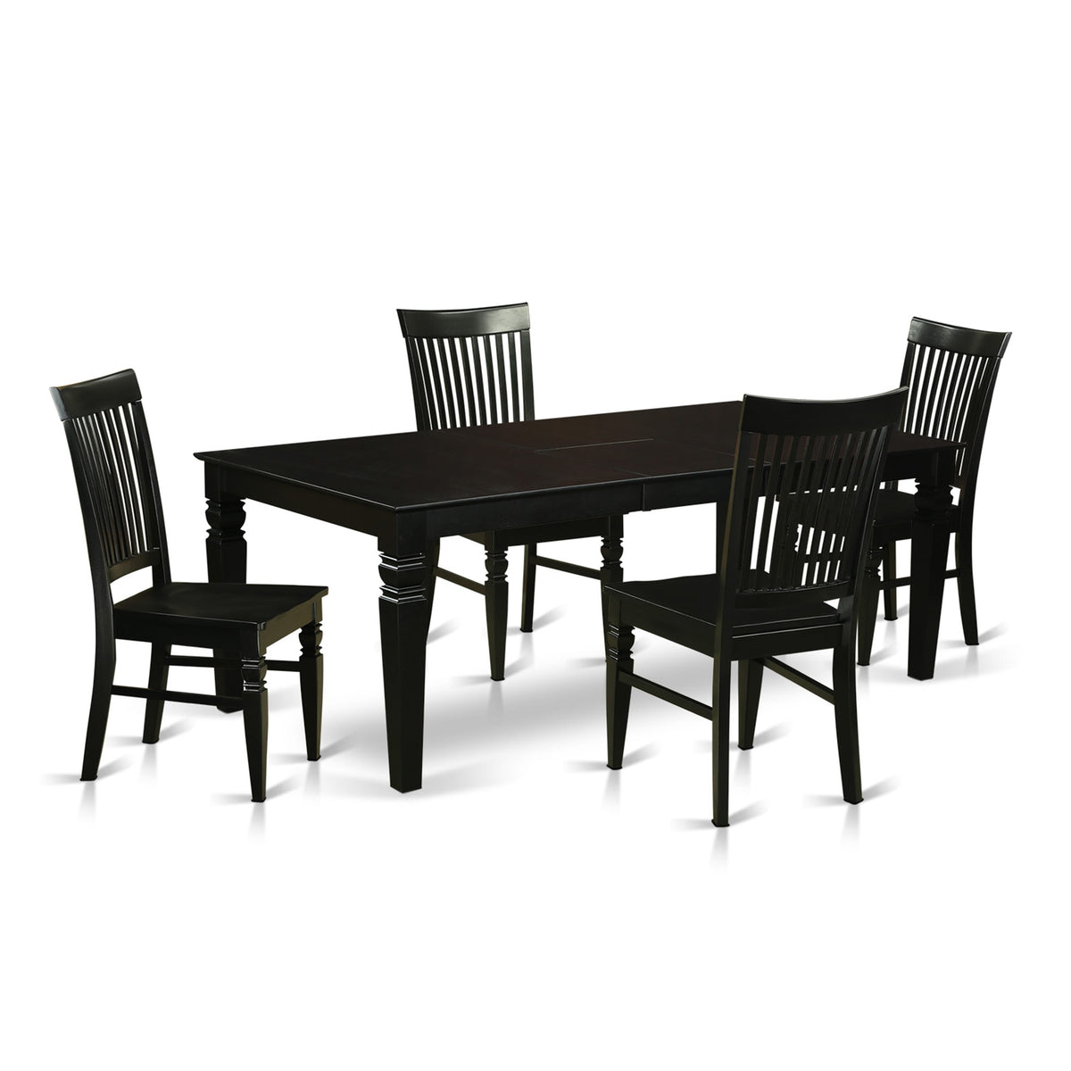 This Beautiful Dining Room Set Is Similar To Timeless Missionary Design And Adds A Stylish, Contemporary Touch To Any Kitchen Or Dining Area. This Particular Five Piece Kitchen Table Set With 1 Table And 4 Kitchen Chairs. High Quality Kitchen Set Which Made Out Of 100% Asian Hardwood. Simply No Mdf, Veneer, Laminate Include With Our Items. This Table Integrated An 18 In Self Storage Extension Leaf Which Can Be Stored Right Beneath Table Top. The Rectangle-Shaped Kitchen Table Is Finished In A Warm, High Sheen Black Which Is Easy To Maintain And Polish. This Table Features Strong Square Legs With Carved Decor And Plenty Of Space For Individual Comfortably. The Straight Back Chairs Are Perfect For Both Formal And Casual Get Together. 5 Piece Dinette Set With 1 Logan Kitchen Table And Four Solid Wood Seat Dining Area Chairs Finished In A Luxurious Black Color.