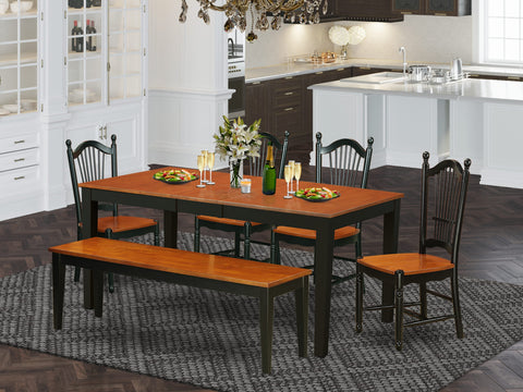 6-Piece Dining Set NIDO6-KSO-L with Expandable Table, Chairs, and Bench in Black & Cherry