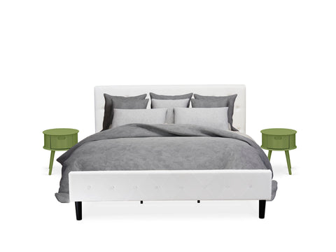 NL19K-USGYN 3-Piece King Bedroom Ensemble - Tufted Velvet Bed, Green Nightstand