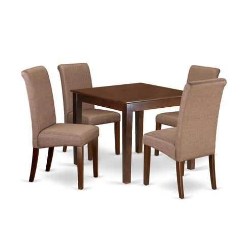 5-Piece Dining Ensemble with Square Table & 4 Parson Chairs – OXBA5-4HM-0Q – Mahogany Finish, 36x36