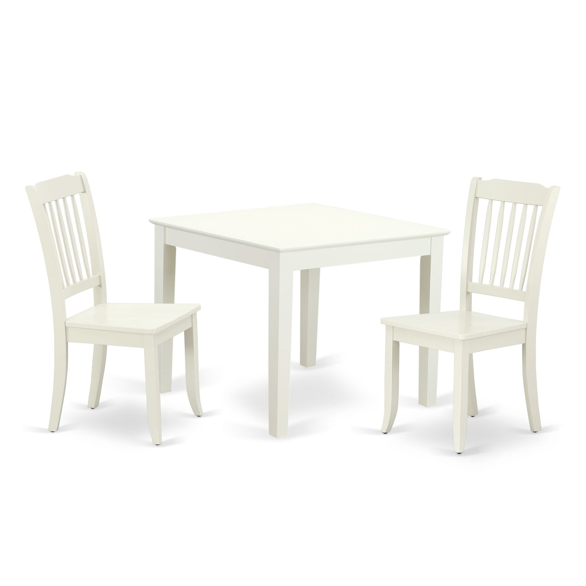 OXDA3-ZU1-Q 3-Piece Dining Ensemble with Square Table & Two Chairs, 36x36, Linen White