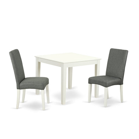 OXDR3-VD8-Q4 3-Piece Compact Dining Set with Square Table & 2 Gray Parson Chairs, Linen White, 36x36