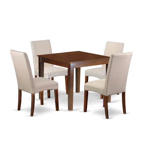 Mahogany Dining Ensemble OXDR5-WV6-32 5-Piece Set with Cream Upholstered Chairs and Compact Table