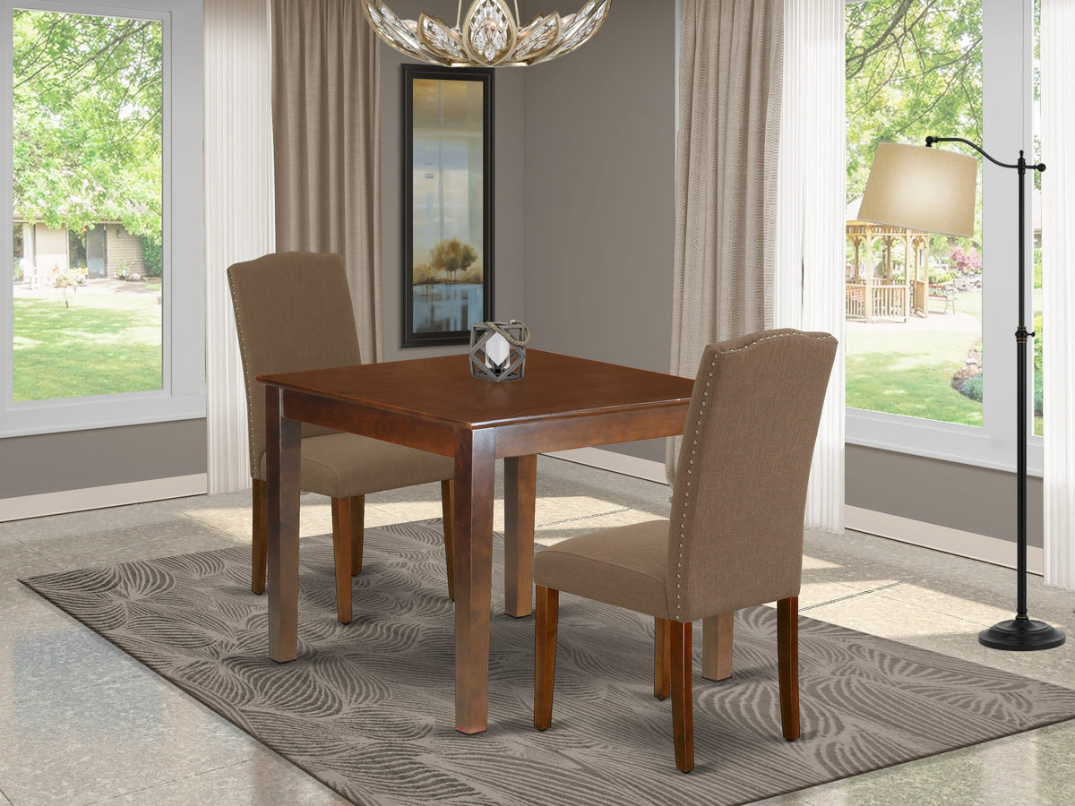 OXEN3-BVP-G7 3-Piece Dining Set with Square Wooden Table and Two Coffee Linen Parsons