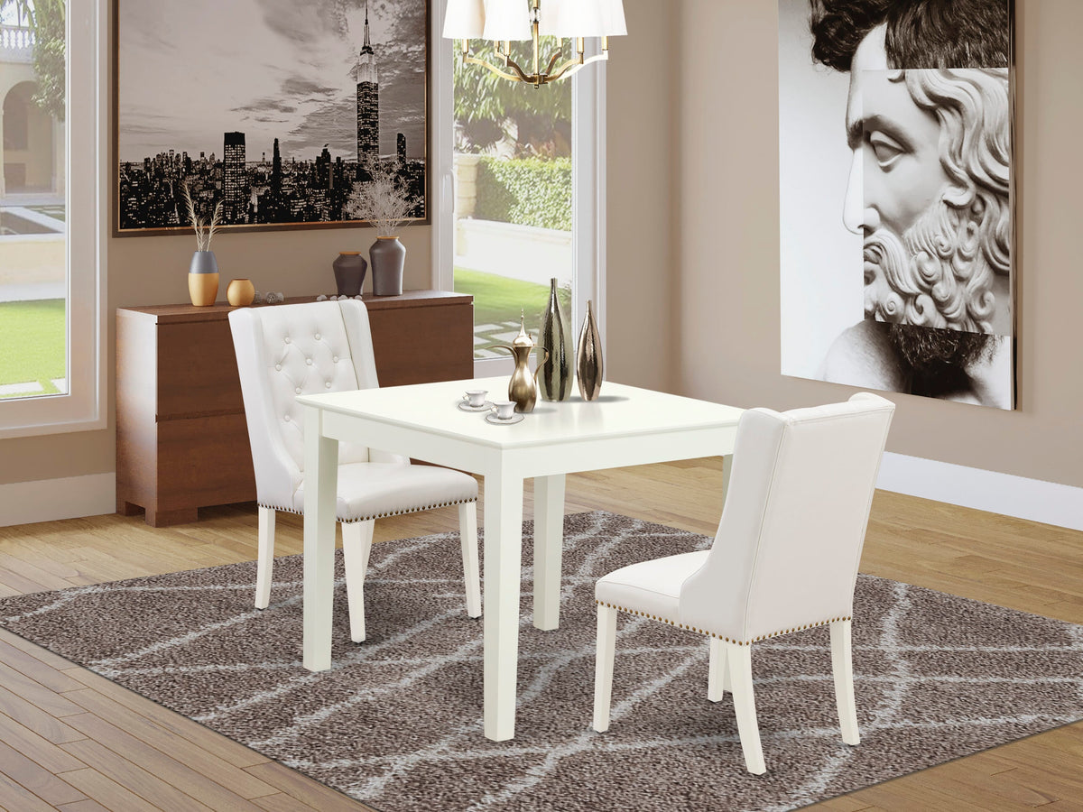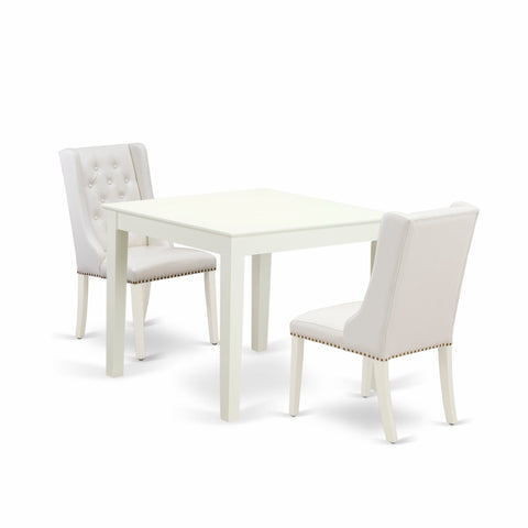 3-Piece Dining Set OXFO3-GIT-NL Square Table & Faux Leather Chairs Duo, 36x36, White Finish