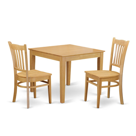 OXGR3-JCN-G Compact 3-Piece Set with Square Table and Two Chairs for Dining Room, Oak Finish, 36 Inches