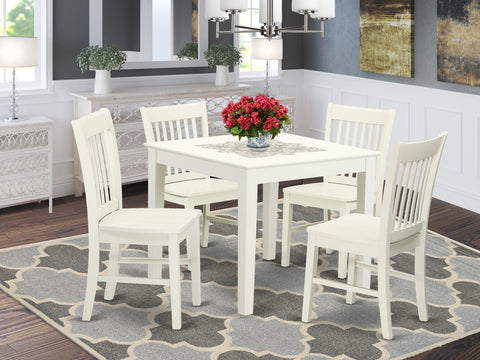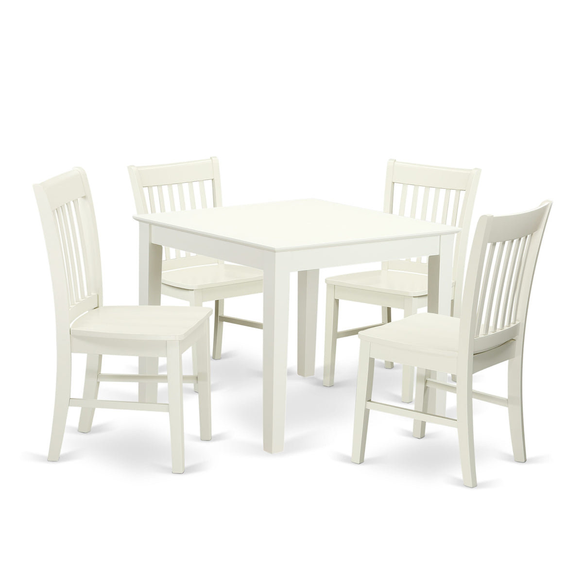 OXNO5-4TH-C 5-Piece Dining Ensemble with Square Table and 4 Dining Chairs in Linen White, 36x36 Inch
