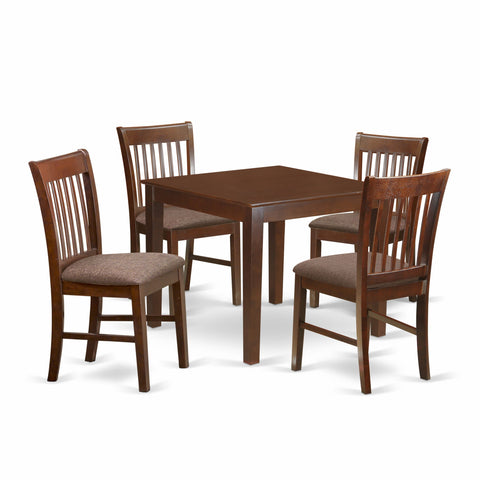 OXNO5-JKH-P Mahogany Dining Ensemble Square Wood Table with 4 Fabric Chairs
