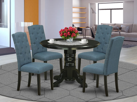5-Piece Dining Set SHCE5-JVY-6W with Round Pedestal Table & Parson Chairs, Blue Linen Fabric