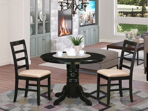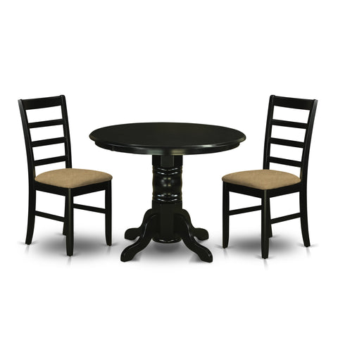 SHPF3-0ZT-V 3-Piece Compact Dining Ensemble with Round Pedestal Table and Two Linen Upholstered Chairs, 42 Inch Black