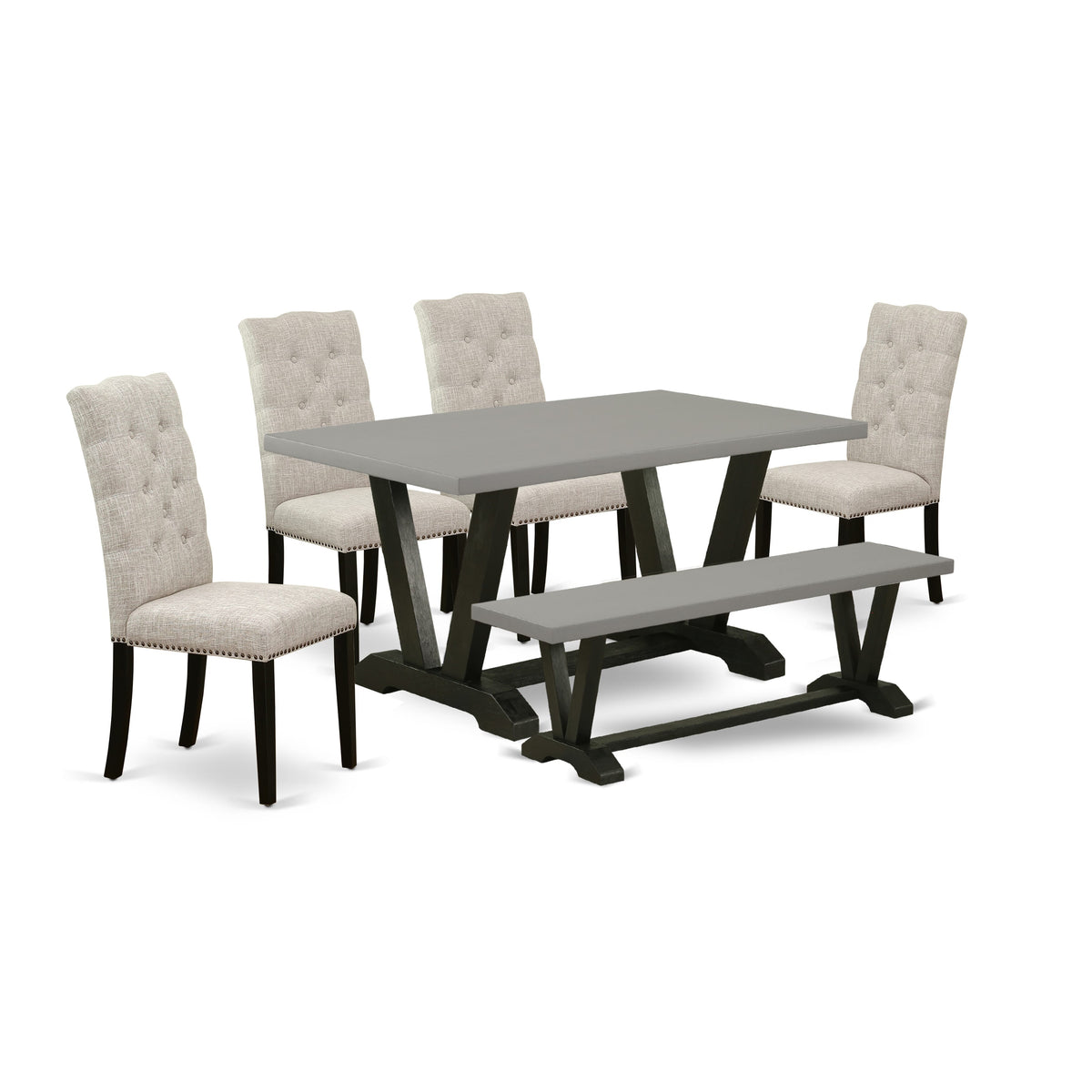 This kitchen table set includes 4 wonderful Kitchen Parson Chairs, an awesome mid century modern bench, and a wonderful kitchen rectangular table. This kitchen rectangular table is offered in an elegant Wire Brushed Black finish. In addition, the Parson dining room chairs in a Doeskin linen fabric and wonderful Cement Color mid century modern bench top enhance the elegance of any kitchen or dining room. Our dining table set provides great durability because this wood dining table and wooden bench are built from high quality Asian Wood which can bear the weight of 300 Lbs. We have created these Parson dining room chairs and kitchen table, mid century modern bench with the help of highly experienced carpenters, who generate a smooth and high-end finish to this modern dining table set. We try to offer innovative as well as easy to assemble products. Our high-quality dining table set is perfect for you and your beautiful dining area as well as the kitchen area. You can use it for casual home parties or intimate gatherings. Keep enjoying East West modern furniture!
