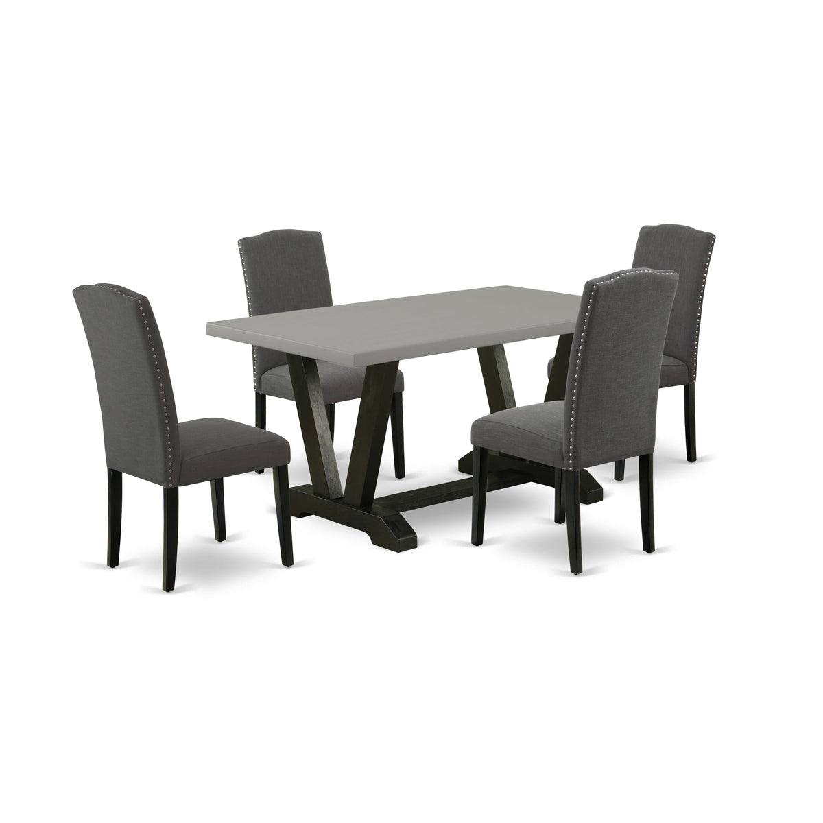 Our dinette set includes 4 mid century dining chairs and 1 modern rectangular dining table. This dining room table has a rectangular table top and attractive legs. The hardwood structure and soft padded back ensure that these kitchen chairs sturdiness and offers decent support to your back, in addition to their ideal size these Urban Style chairs are trouble-free to build and easy to rearrange. These simple but charming Padded Parson Chairs will add ambiance and style to your dining room. Give your home a pop of chic style with this must-have dining room table set. A contemporary twist on a classic design, this eye-catching modern dining table set design will liven up any timeless appeal. Just by switching out your chairs and wood dining table, you can effortlessly refresh your dining space. This kitchen table set is very easy to construct. You only need around 1 hour to build this kitchen dining room set. This kitchen dining set comes with all the necessary hardware to put together this kitchen dining set. These parson dining chairs are easy to carry or move around. Enjoy with East West Furniture!