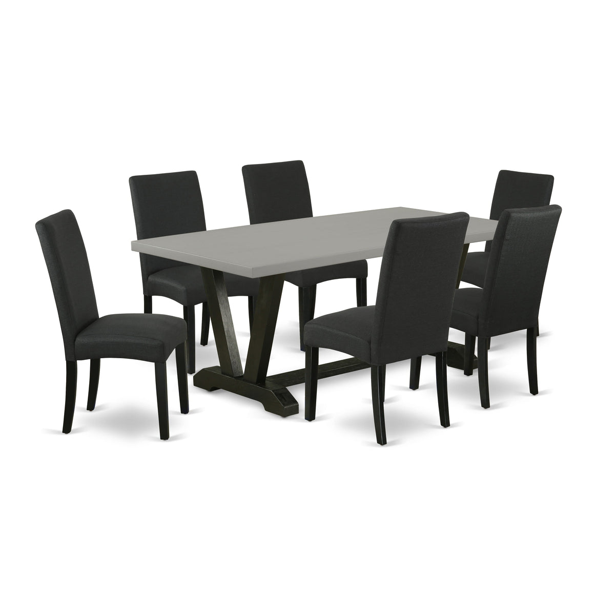 Bring your kitchen or dining area to the next level with our innovative style dining room table set. Including 6 High back kitchen chairs with slightly curved angles throughout, in a bright colored finish. The dining room table features a traditional style with a painted, fresh Wire Brushed Black finish legs for a simple, yet a classy table. Enjoy meals with your family, with this elegant dinette set. The chair is covered with breathable linen fabric to produce a cozy touch. High back kitchen chairs look elegant. This listing has a premium color of Cement Color finish for a small kitchen table top and a Black Finish Parson Chair with a Stylish back. Our lovely premium colors boost the beauty of your dining area and provide a fantastic appearance to your dining room or kitchen area. East West Furniture always crafted from modern furniture along with easy construction parts. We try to keep our furniture parts modern as well as simple. Our high class rectangular dining table set is ideal for your lovely dining area as well as the kitchen area. Our dining room set is the ideal complement to your home! Give your guests the best seat in the house. Enjoy with East west Furniture!
