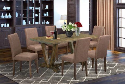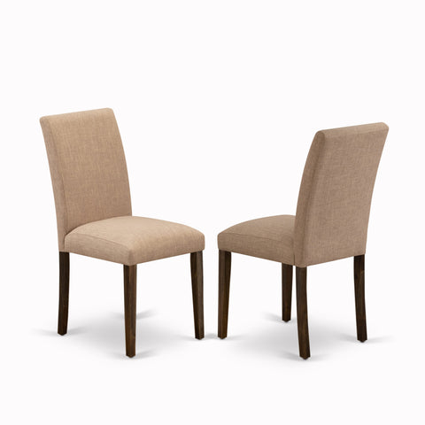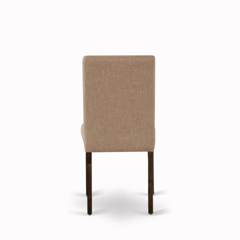 This dinette set consists of 6 mid century modern chairs and a modern dining table. This rectangular dining table has a rectangular top and beautiful legs. The dining room chair has a Linen Fabric seat and a stylish high back. The seat of our upholstered dining chairs offers a good sitting experience and stylish high to fit your back correctly for the backrest. Modern chairs in this dining room consist of 4 legs. The color of the dining room chair seat is Light Sable and the wooden legs are Distressed Jacobean. The top color of the dining room table is Distressed Jacobean and the wooden legs are Distressed Jacobean. The dining set is made of solid wood. This wood is also called rubberwood. This wood always gives durability and strength. This kitchen table and dining chairs give more balance with the help of legs because this is made of rubberwood. Make your complete kitchen dining table set stronger. You can use this dining room table set for a long time. You can move our parson dining chairs under the dining room table when you finish your meal. Easy to assemble these mid century dining chairs and dining room table. You only need to take about 50-60 minutes to assemble each dining room set. This dinette set comes with all the necessary tools. This modern dining table set cleans easily because this dining table set design has smoothed. You can easily clean this set with any brush and dust cleaner cloth. You can clean this dining room set within a few minutes. This dining table set matches any room décor because of its style. This dining room set offers an always-fresh look and attracts any person who comes to your home.