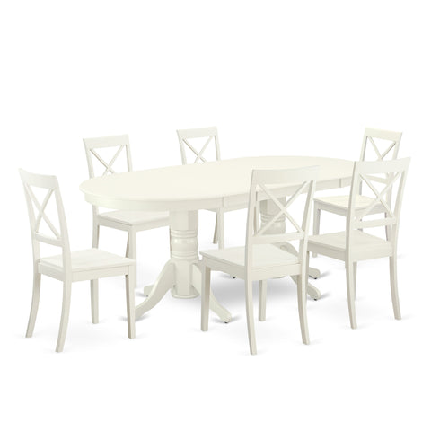 VABO7-2U0-3 Elegant 7-Piece White Dining Ensemble with Oval Table & Six Matching Chairs, 40x76