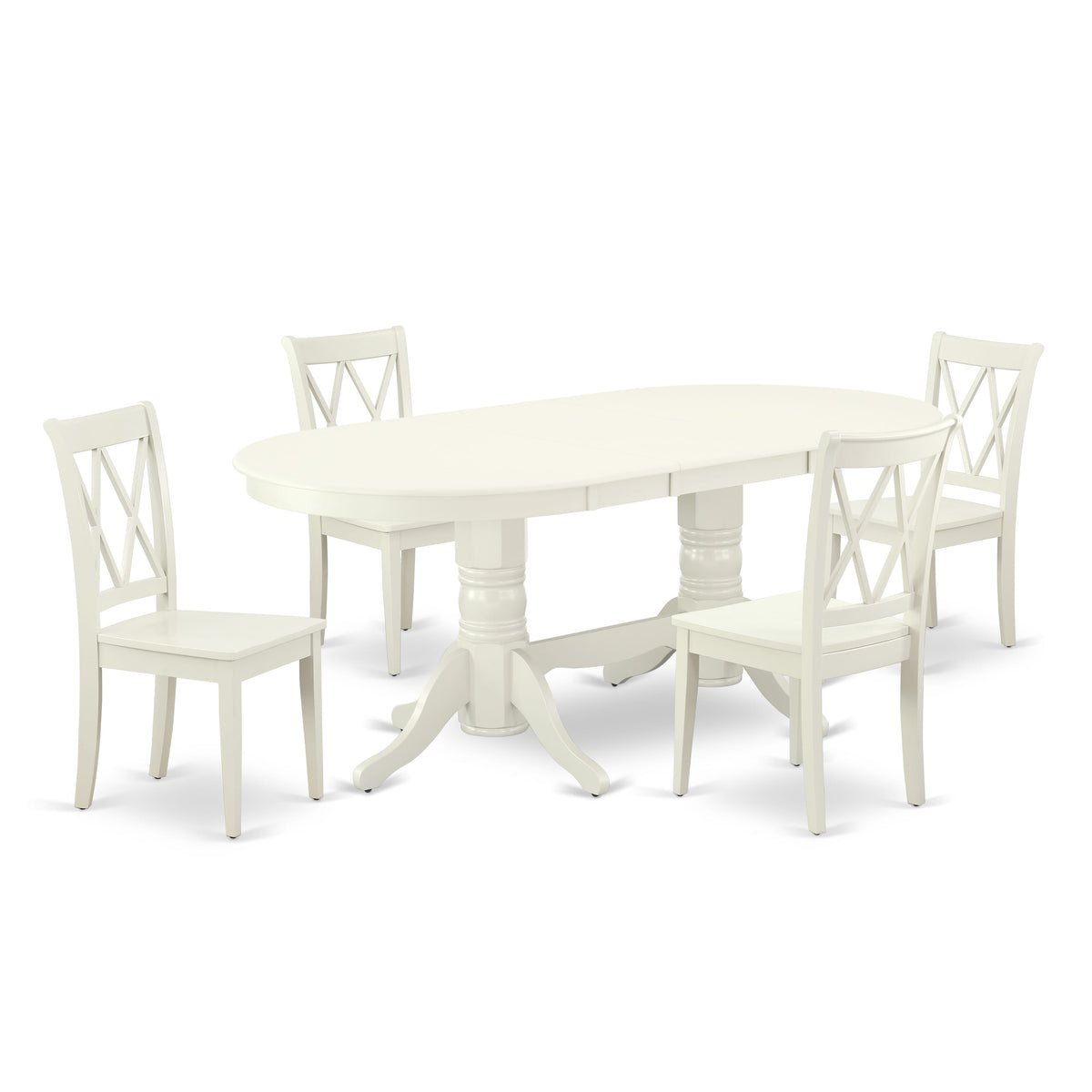 VACL5-S0I-9 Sleek 5-Piece Dining Set with Expanding Oval Table & Chairs, 40x76 White Finish